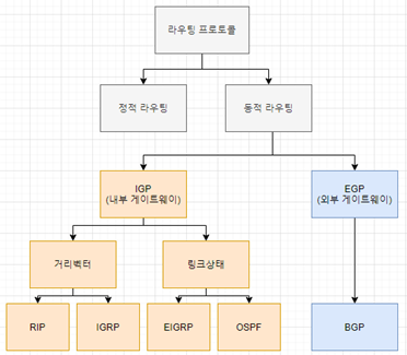 - 모든 라우터에서 지원이 가능한 표준 라우팅 프로토콜이다.