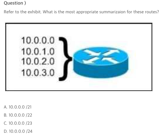 다음 문제는 그림을 참조해서 포함하고 있는 Network 대역대를 위한 가장 적당한 축약방법을 고르라고 한다
