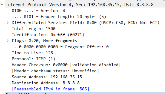 - Flags: IP 데이터그램이 단편화됬는지를 나타내는 필드이다.