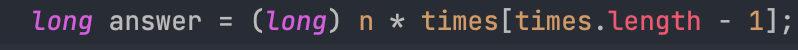 - 입국 심사 소요 최대 시간 = n * times 원소 최대 값