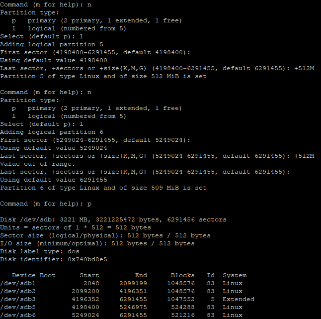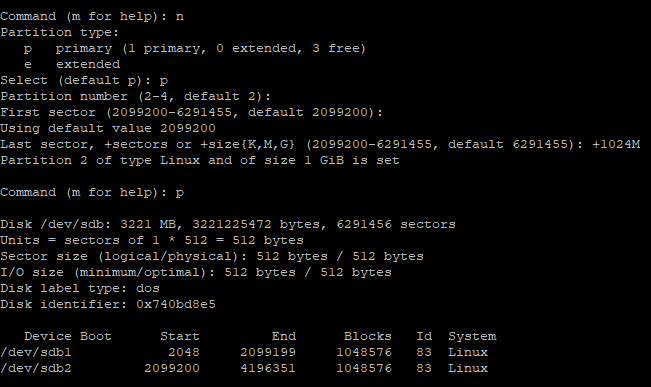 fdisk /dev/sdb