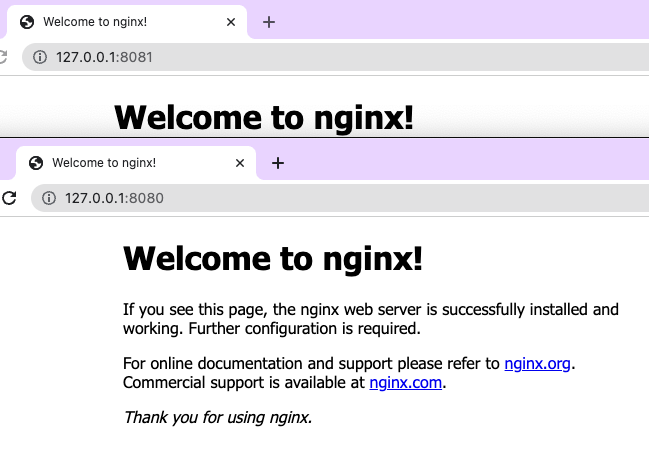 끝으로, nginx 서비스 확인 해줍니다. ( 포트는 각각 8080, 8081)