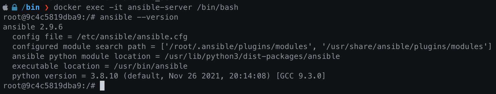 $docker exec -it ansible-server /bin/bash