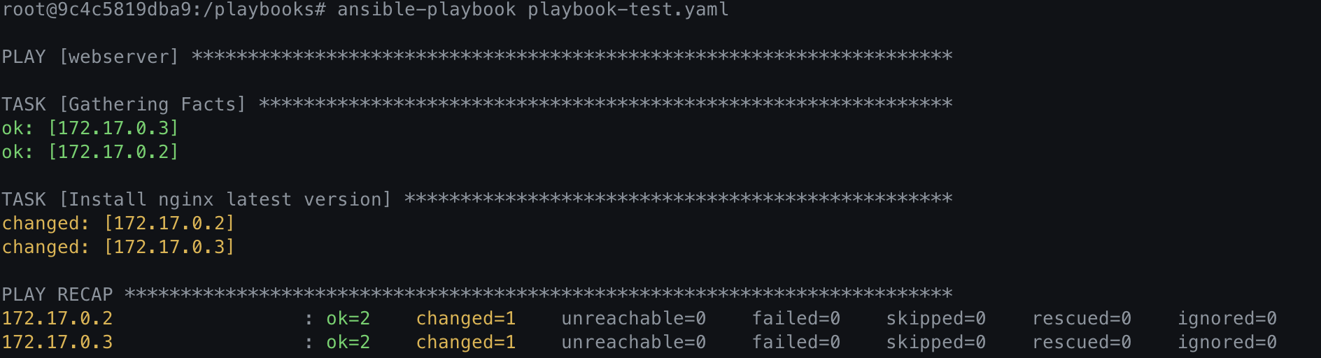 $ ansible-playbook playbook-test.yaml