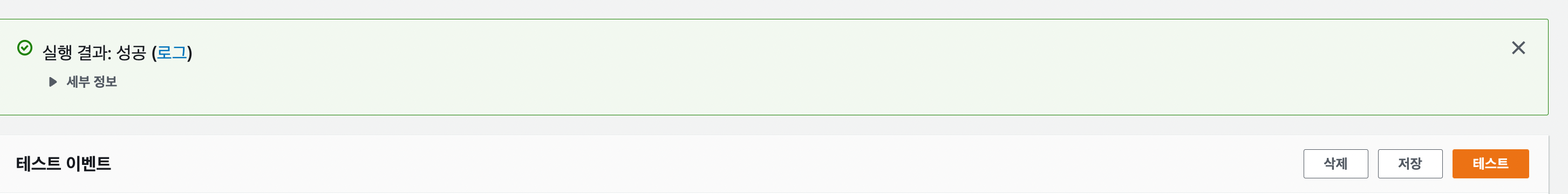 세부 정보에서 결과를 볼 수 있고 CloudWatch에서 /aws/lambda/ 이동해서 해당하는 로그를 볼 수 있습니다.
